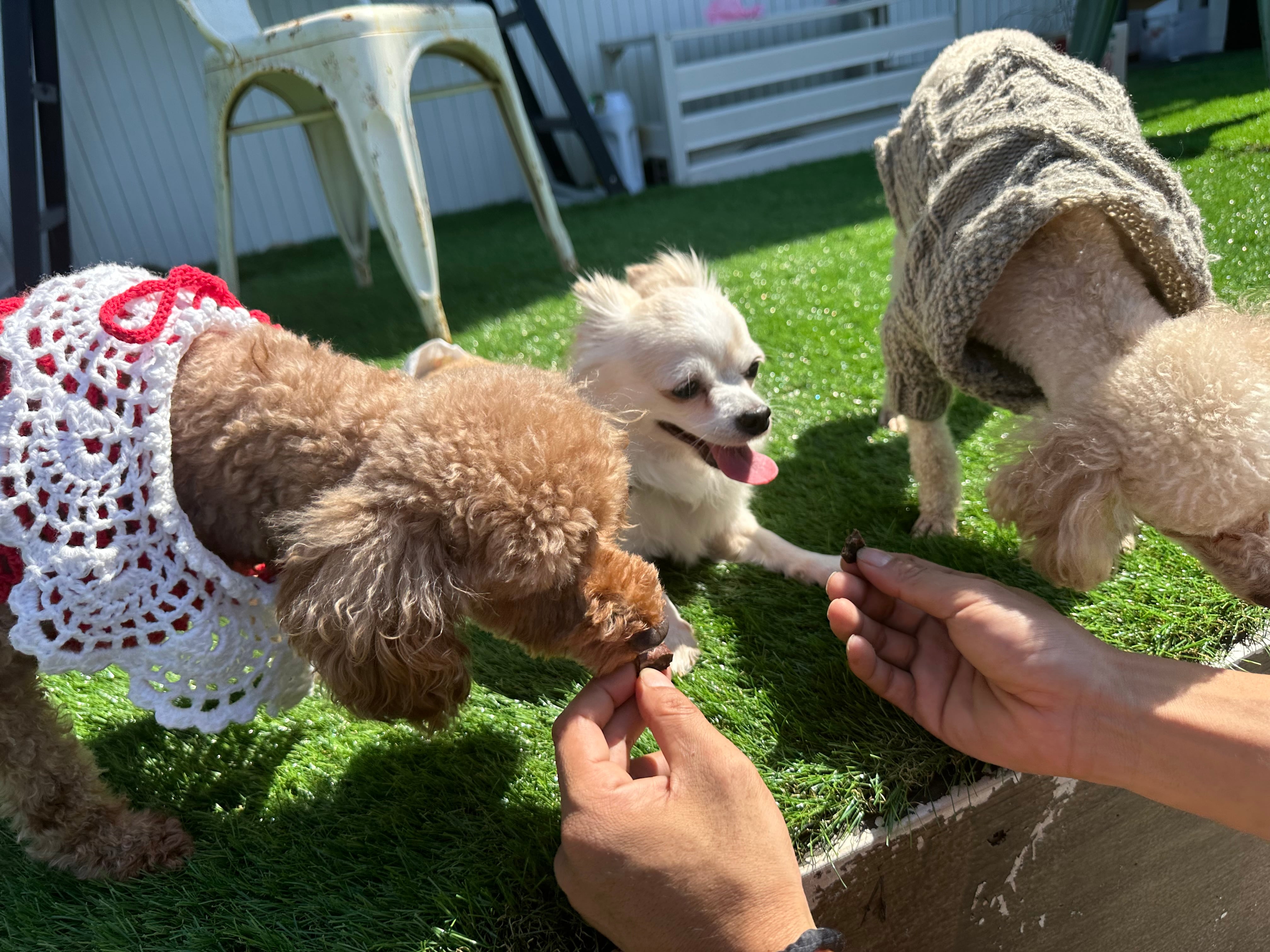 小さなワンちゃんには、ハサミや手で小さくカットして。